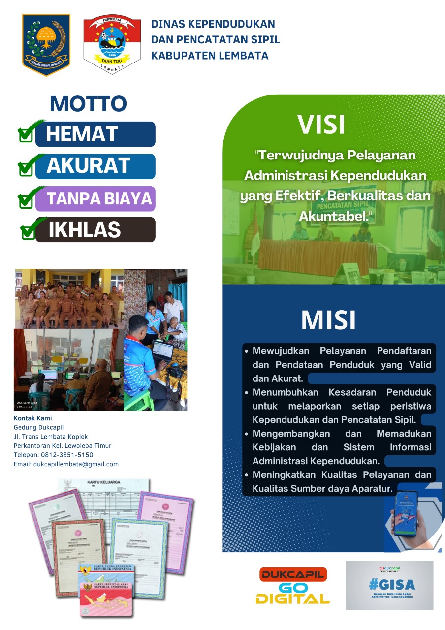Moto, Visi, dan Misi Dinas Kependudukan dan Pencatatan Sipil Kabupaten Lembata