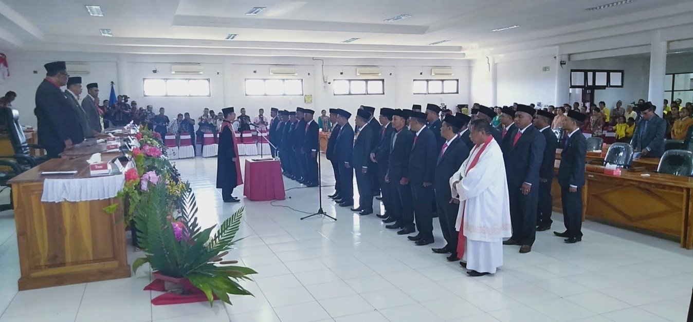 Berdasarkan surat Keputusan Gubernur Nusa Tenggara Timur Nomor : Pem.171.2/II/326/VII/2019, tentang “Pengangkatan Dewan Perwkilan Rakyat Daerah Kabupaten Lembata Masa Jabatan Tahun 2019 -2024”. Para Anggota DPRD Kabupaten Lembata yang terpilih, diambil sumpahnya dalam sidang paripurna istimewa. Siding yang dipimpin oleh ketua DPRD periode sebelumnya Ferdinandus Koda, pada Senin, (2/9/19).