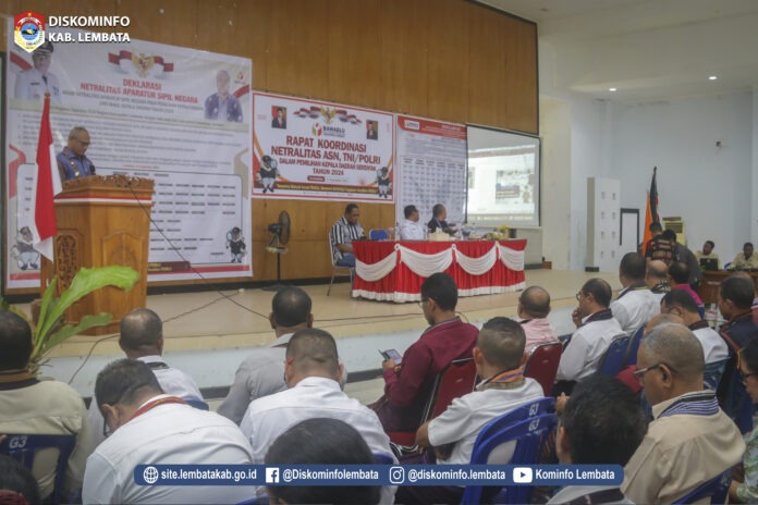 Penjabat Bupati Lembata, Paskalis Ola Tapo Bali, A.P., M.T., dalam menyampaikan materi mengenai Netralitas ASN, menekankan bahwa ada banyak pedoman terkait Netralitas ASN dan pentingnya menjaga integritas dan obyektivitas dalam pelayanan publik.