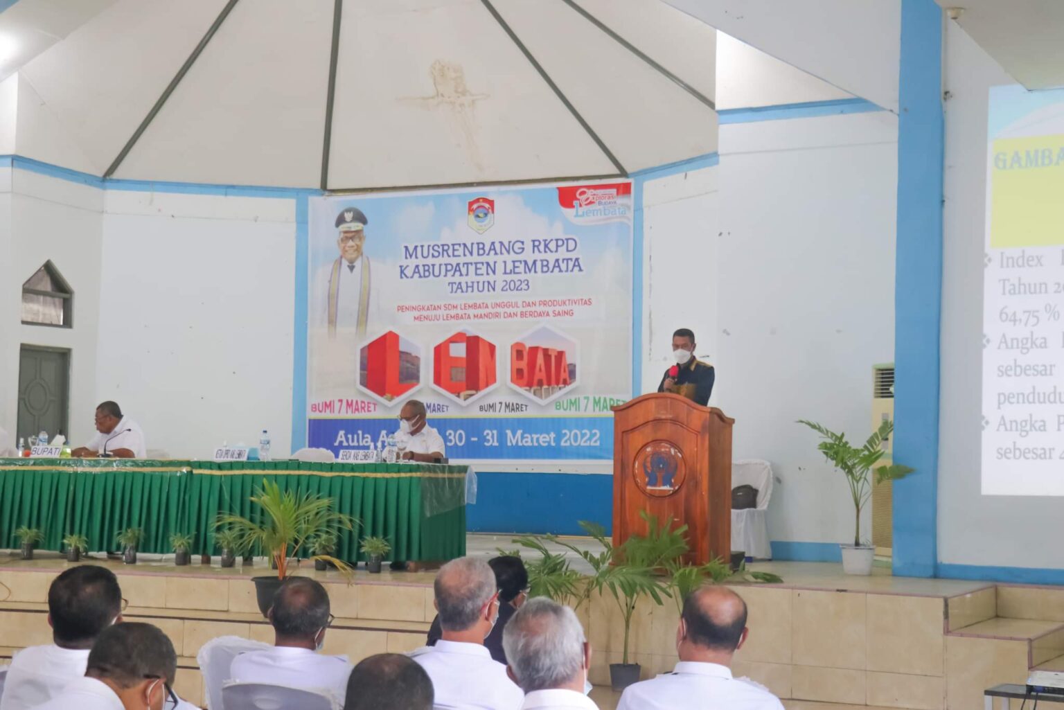Ketua DPRD Lembata Petrus Gero saat membawakan materi pada Musrenbang RKPD 2022 di Aula Anlara Lewoleba (30/3/2022)