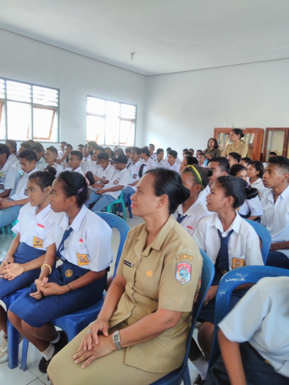Mendengarkan Materi : Para siswa SMP dan SMA Swasta Anuh Gerah kasih serius mengikuti materi Internet Sehat dari Kepala Seksi Pos dan telekomunikasi Marsel Molan,S.Sos di Aula setempat beberapa waktu lalu.