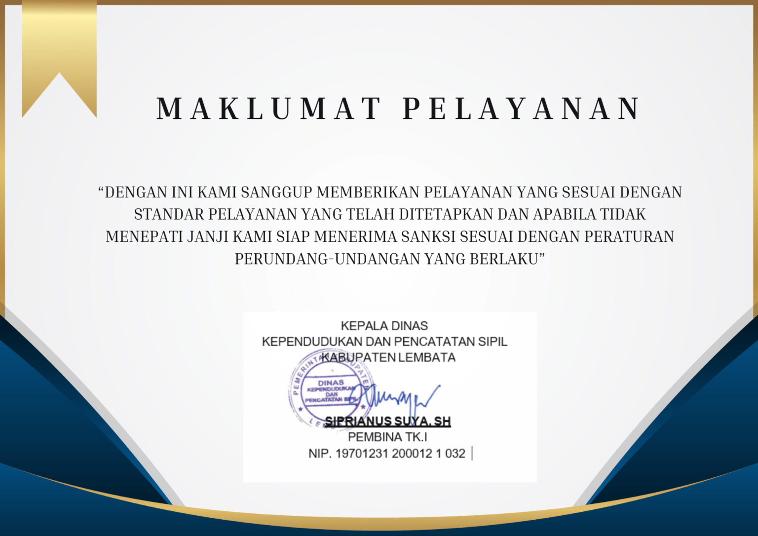 Maklumat Pelayanan Dinas Kependudukan dan Pencatatan Sipil Kabupaten Lembata