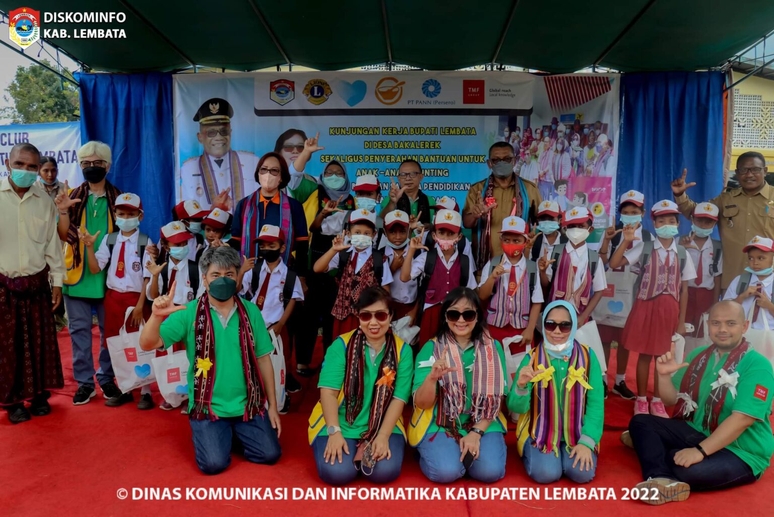 Bupati Lembata Thomas Ola bersama ibu foto bersama Lion Club, Perwakilan PT. PANN, Perwakilan TMF Group Indonesia foto bersama anak – anak yang menerima bantuan perlengkapan sekolah. Bakalerek Nubatukan (28/03/2022)
