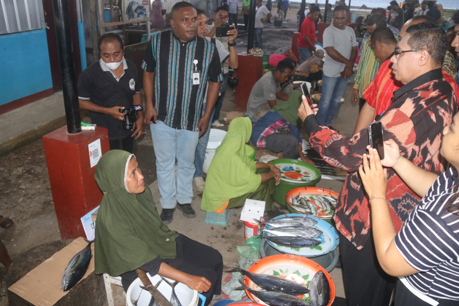 Usai launching, acara dilanjutkan dengan penyerahan secara simbolis barcode QRIS oleh Pj Bupati Lembata kepada petugas pemungut retribusi Pasar Senja TPI Lewoleba, sekaligus bupati mendemokan pembayaran aplikasi QRIS kepada petugas retribusi parkir. (Diskominfo Lemnata)